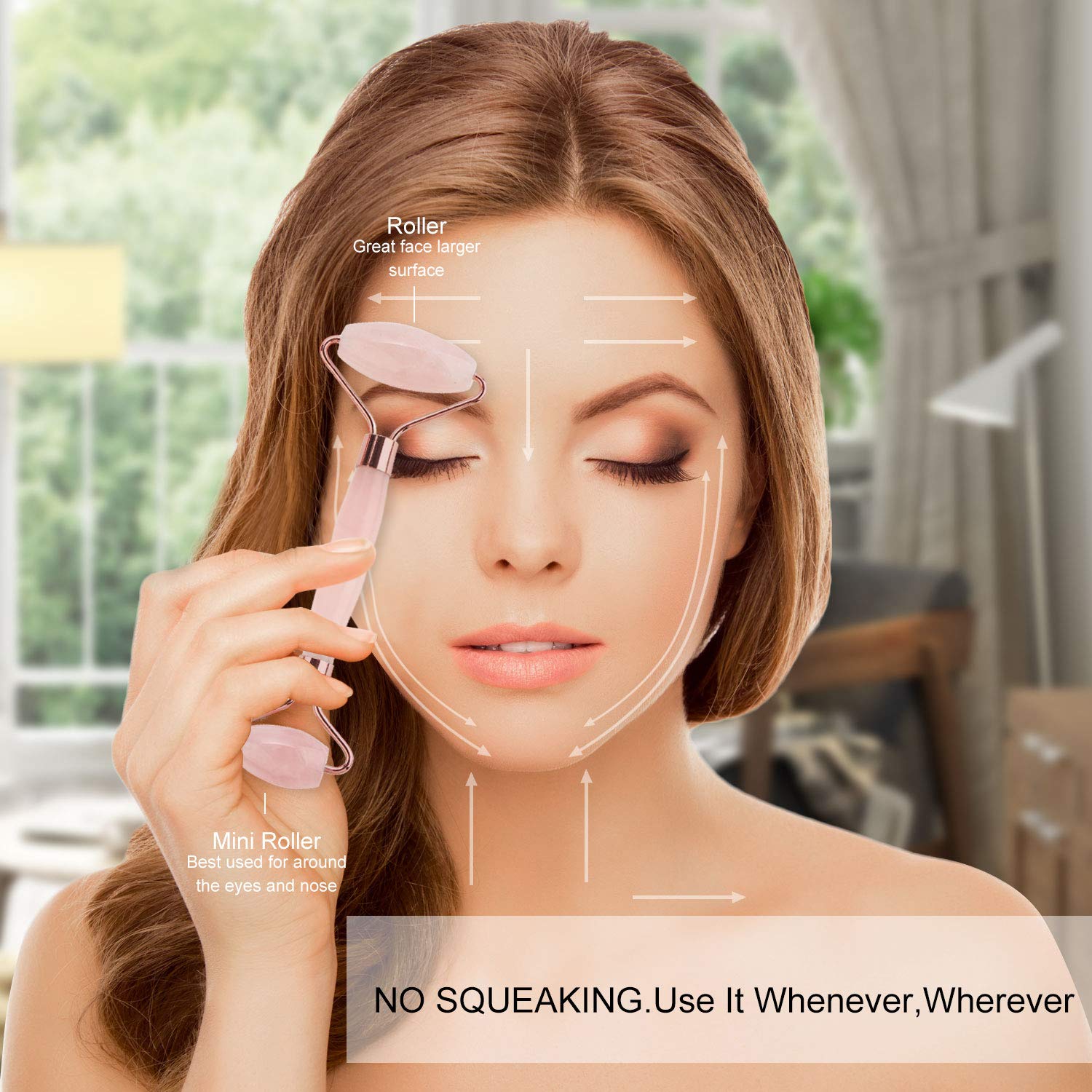 Use small roller head to massage periorbital area, from inside to outside, which can reduce fine lines and prevent wrinkles.